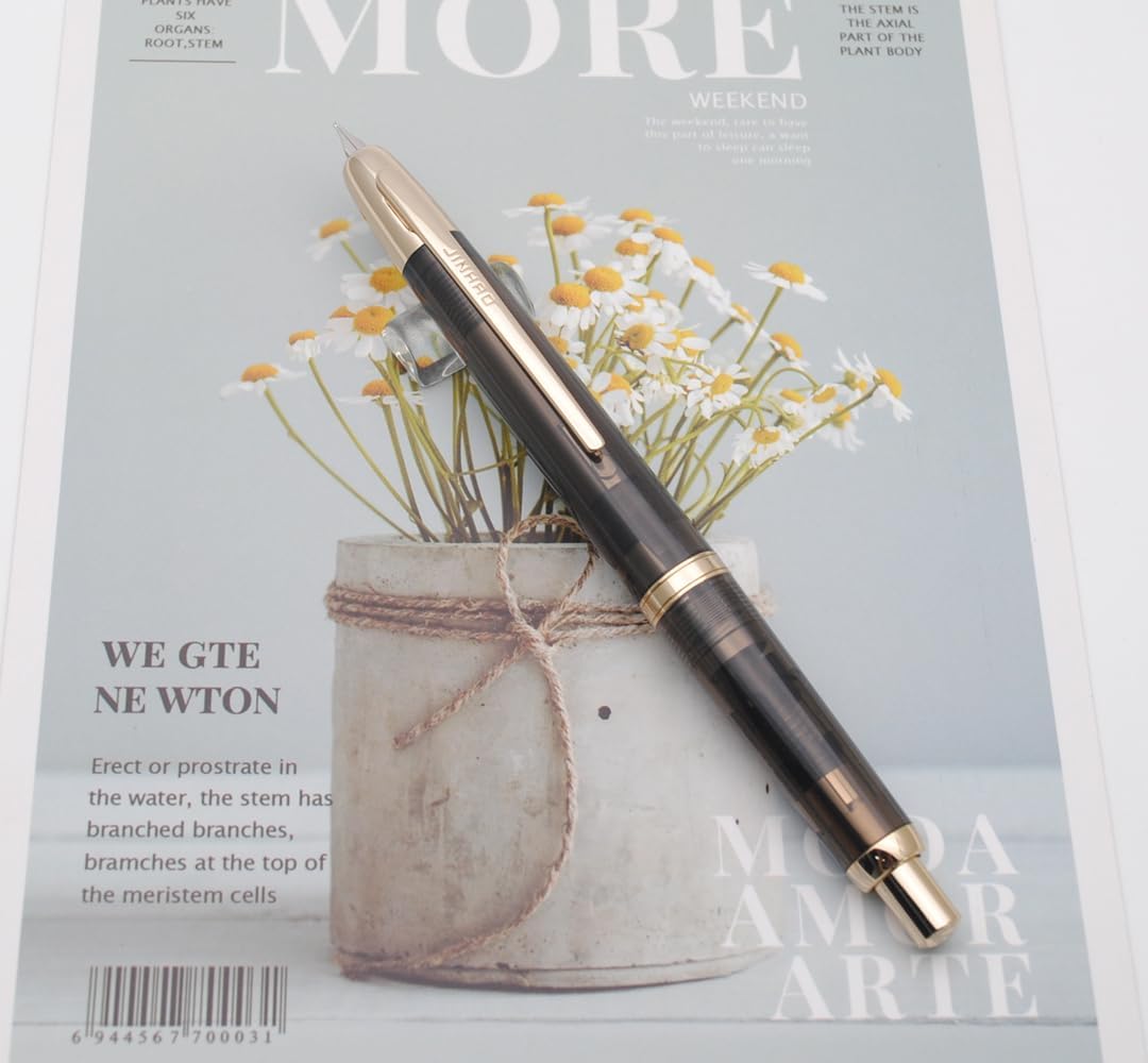 Jinhao 20 Press Retractable Fountain Pen – Transparent Black Colors – Plastic Body (Golden clip) - Fine & Extra Fine Nib with Converter – Smooth Writing Daily Pen (No Ink Included)
