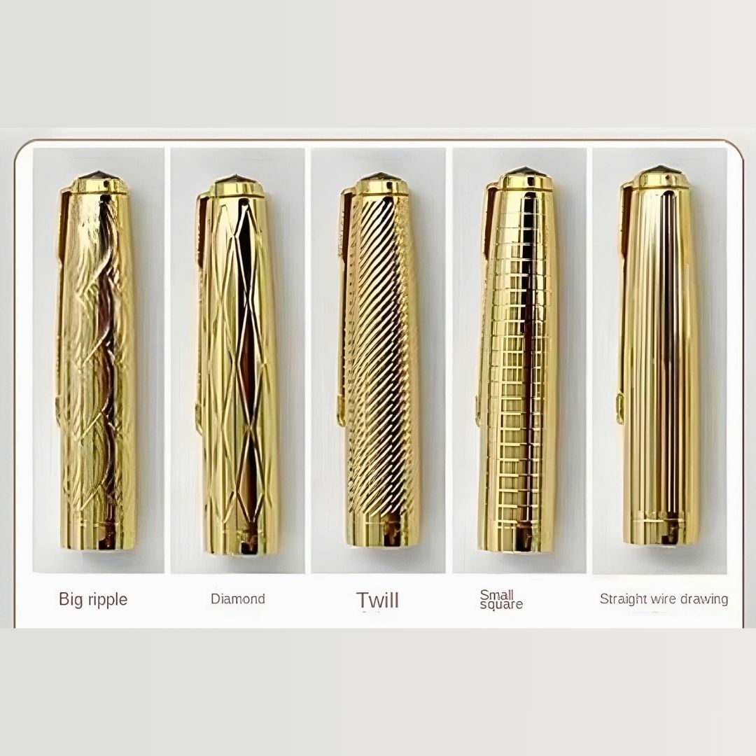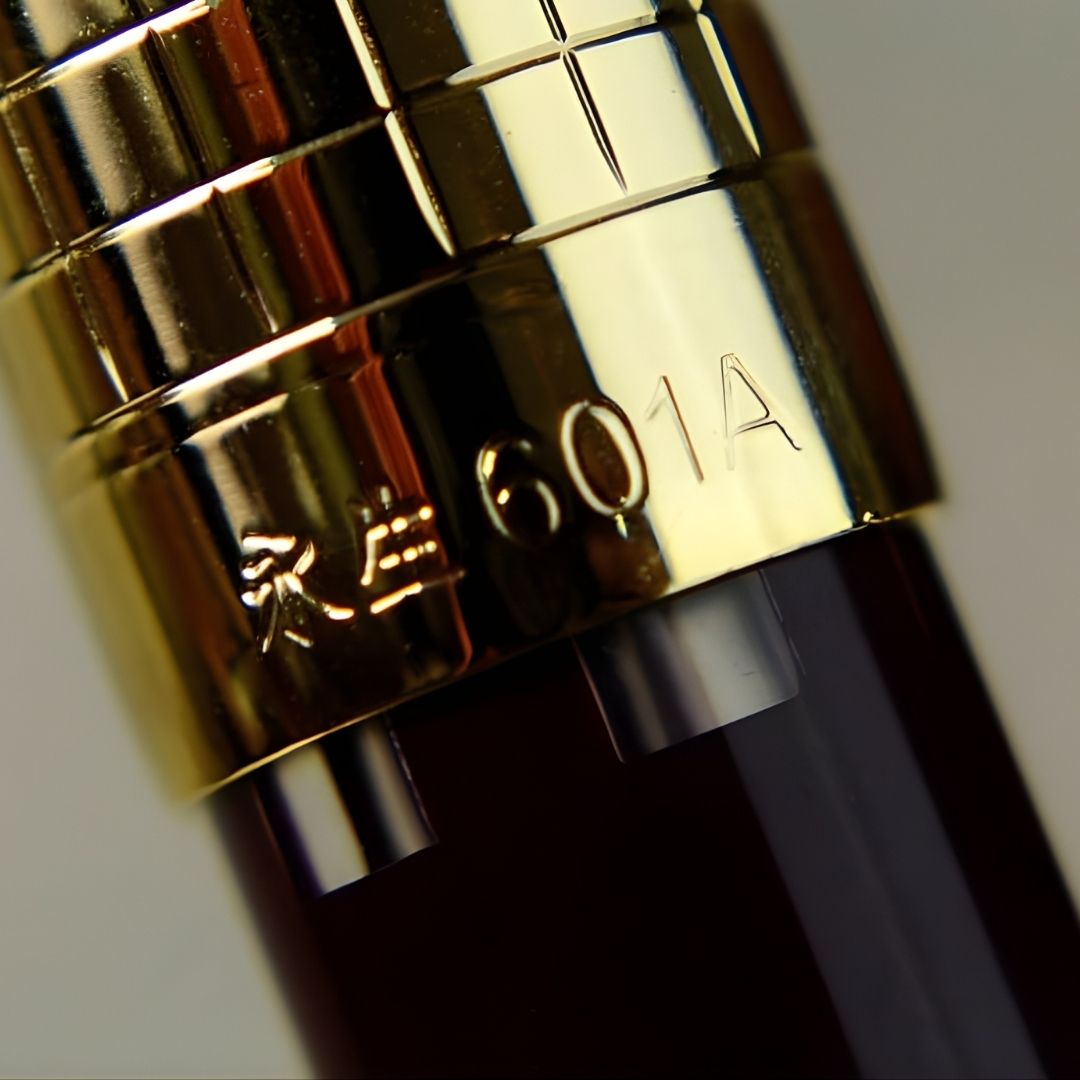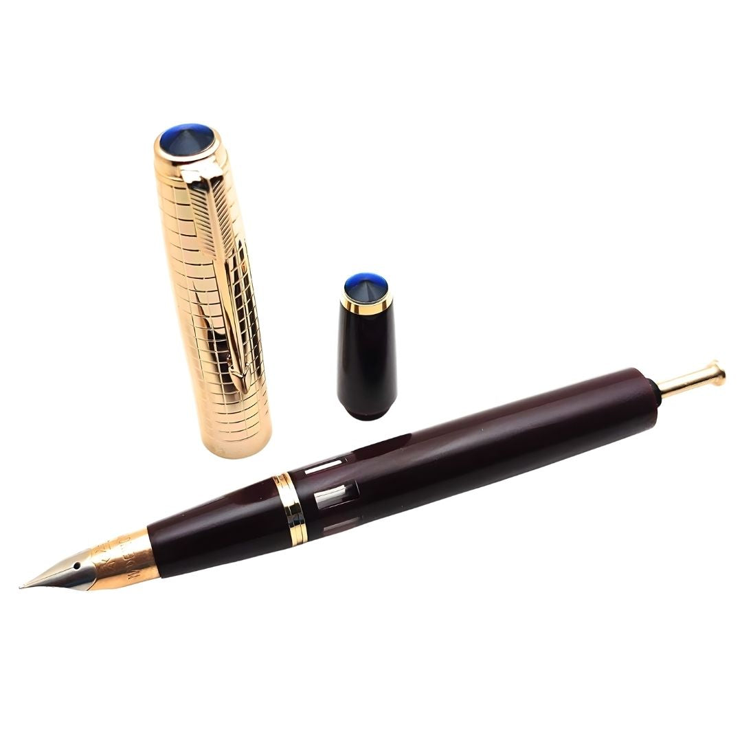 Classic gold-tone metal cap paired with a deep crimson resin body for a sophisticated and stylish appearance.