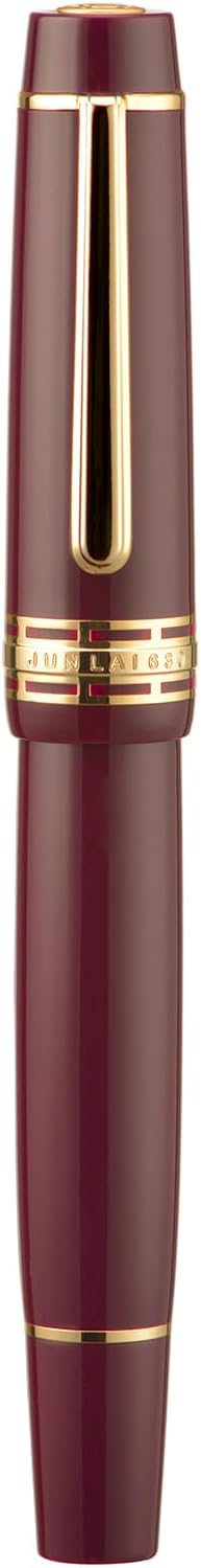 Wing Sung Junlai 630 Acrylic Fountain Pen – #8 Fine Nib, Piston Filling System, Flat Top Design, Blue-Green / Maroon / Piano Black (Fence Ink Tank, Gold Trim)